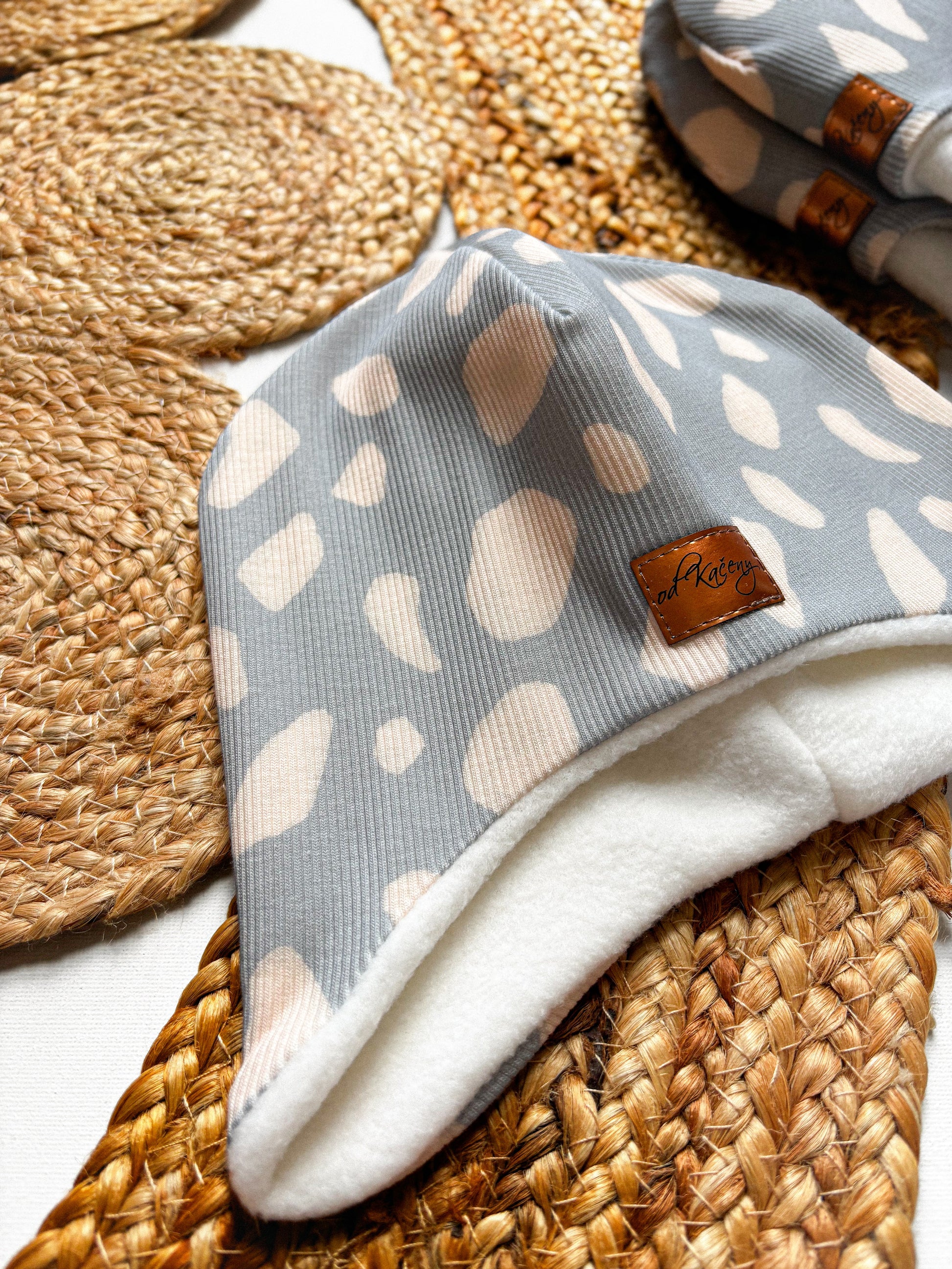 Čepice vyrobená z úpletu a spodní zateplené látky.