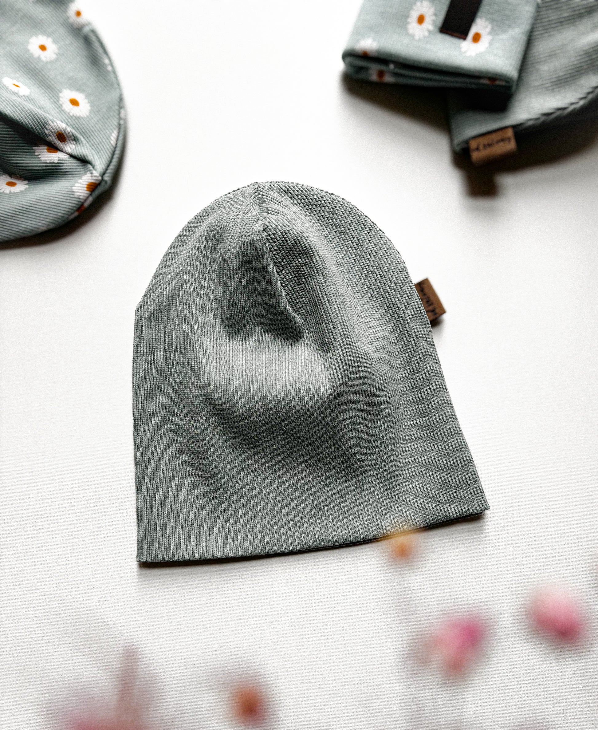 Čepice jednoduchého střihu, vyrobená z bavlněného úpletu.